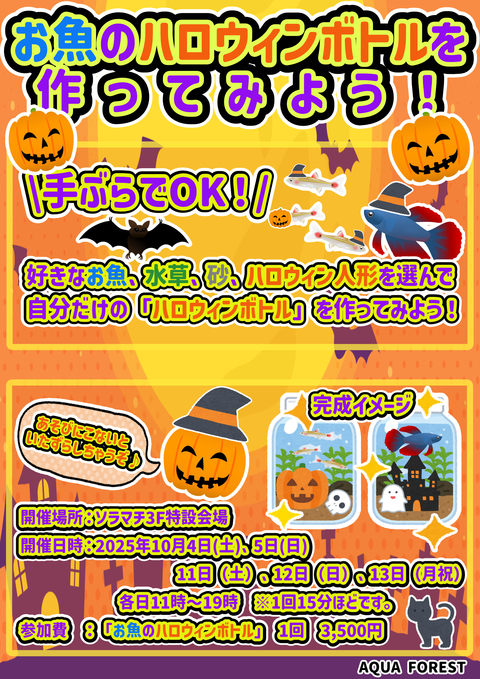 ワークショップ「お魚のハロウィンボトルを作ってみよう!」AQUA FOREST1F イーストヤード 11番地