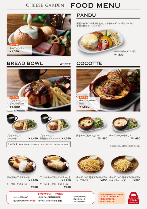 〈チーズガーデン〉カフェに新メニュー登場!チーズガーデン2F タワーヤード 6番地