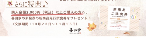 イベント特典「新商品ご試食券」プレゼントのお知らせ!!千住宿 喜田家2F タワーヤード 6番地