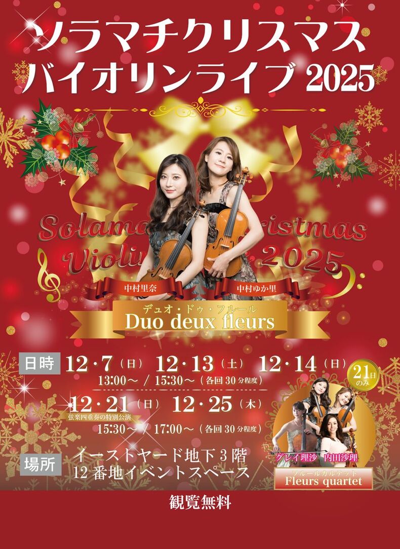 幅広いフィールドで活躍する本格バイオリン姉妹デュオ「デュオ・ドゥ・フルール」による、クリスマス限定のバイオリンコンサートを今年も開催。