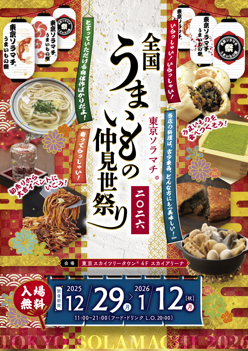 お正月期間は初開催となるグルメイベント「東京ソラマチ® 全国うまいもの仲見世祭り」では、全国各地の郷土料理から話題のB級グルメまで、多彩な“うまいもの”が勢ぞろい。
