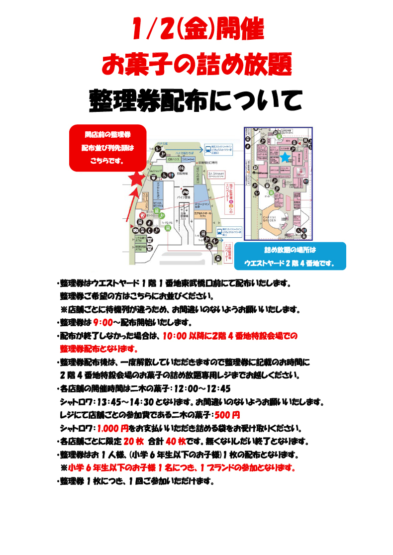 ※整理券の配布場所は1階1番地東武橋口前にて9:00から行います。