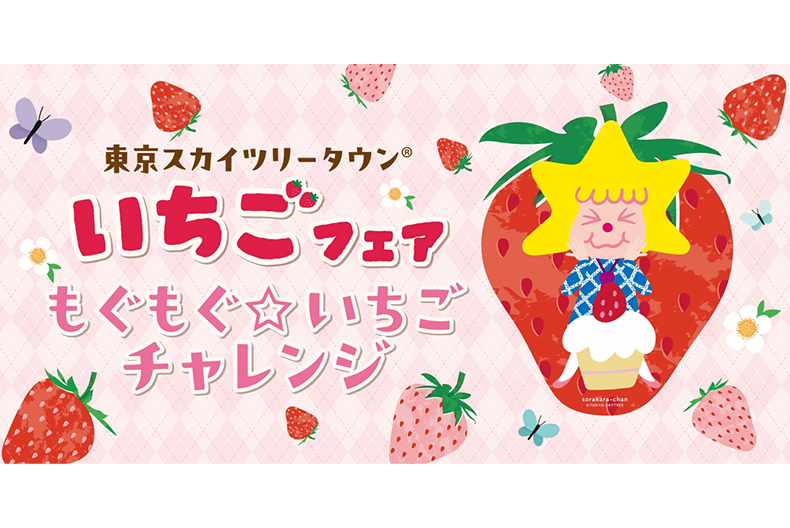 いちごフェアの初開催イベント「もぐもぐ☆いちごチャレンジ」!制限時間2分で、ご用意したいちご15個を食べきれるか!?でも、急いて食べなくても大丈夫です。残った分はお持ち帰りいただけるので、ご自分のペースで召し上がれ。どなたでも参加可能な、ゆるーい、いちごの早食い大会です。