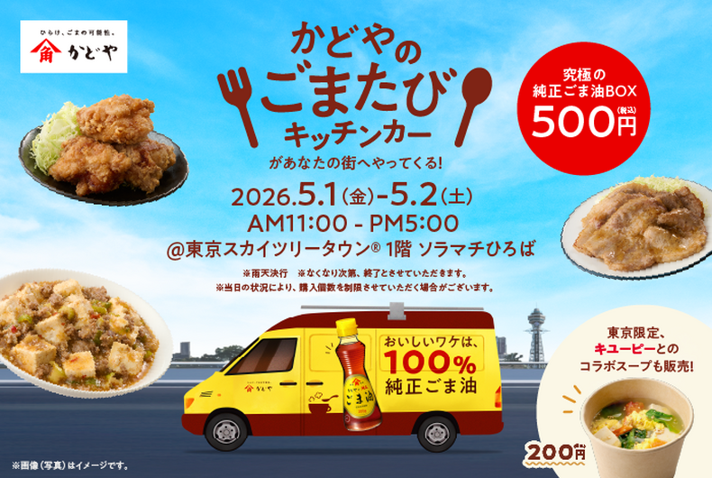 かどや製油のキッチンカー「かどやのごまたび」がやってきます!
