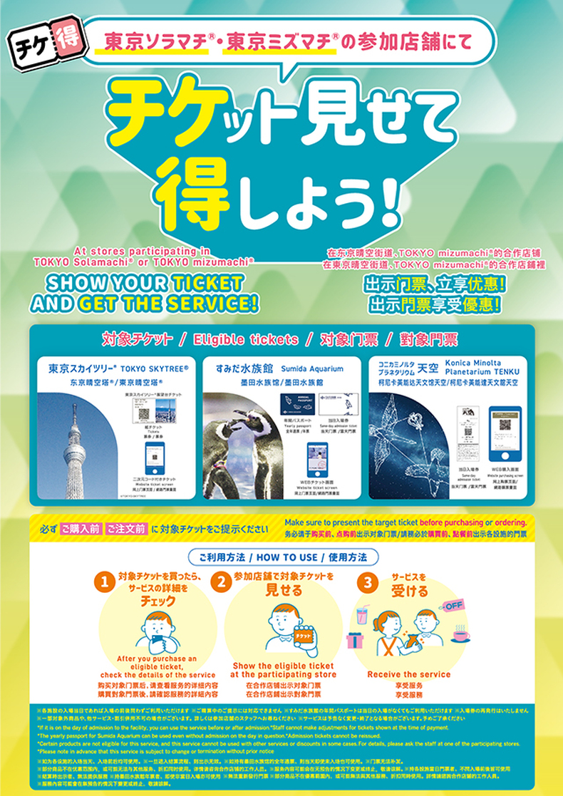 東京ソラマチのお店で購入時またはご注文時にご提示いただくと、おトクなサービスが受けられます!