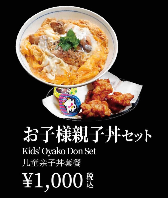鳥一味3F 3番地お子様セット (親子丼と鳥唐揚げのセット) (ドリンク付)1,000円(税込)人気の親子丼がお子様も食べやすいミニサイズに!鶏の唐揚げとジュースも一緒に楽しめるセット。 -