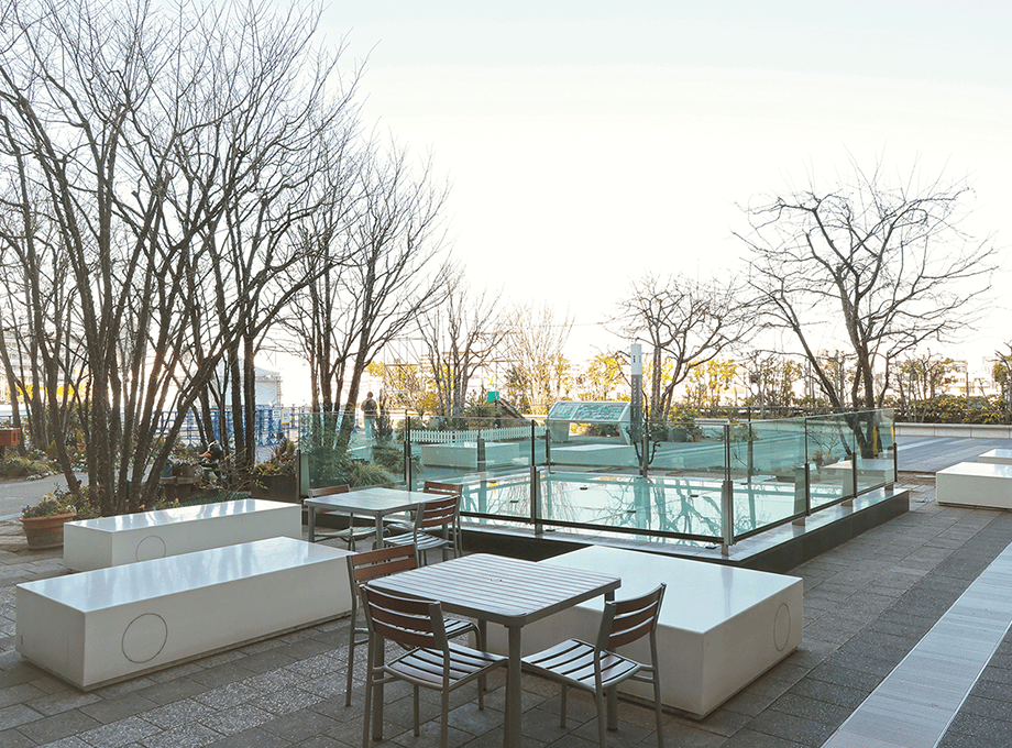 季節ごとに様々なイベントが開催されるこのエリアにも屋外休憩スペースがたくさん!