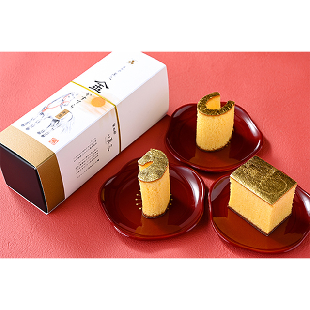 まめや金澤萬久は、貴重な素材と伝統技術に敬意を払い、石川・金沢の文化を背景にしたものづくりと創意工夫の中で生まれる新しい価値を商品にのせています。しっとりとやわらかいかすてらには豪華に金箔を一枚貼りしてお作りしました。