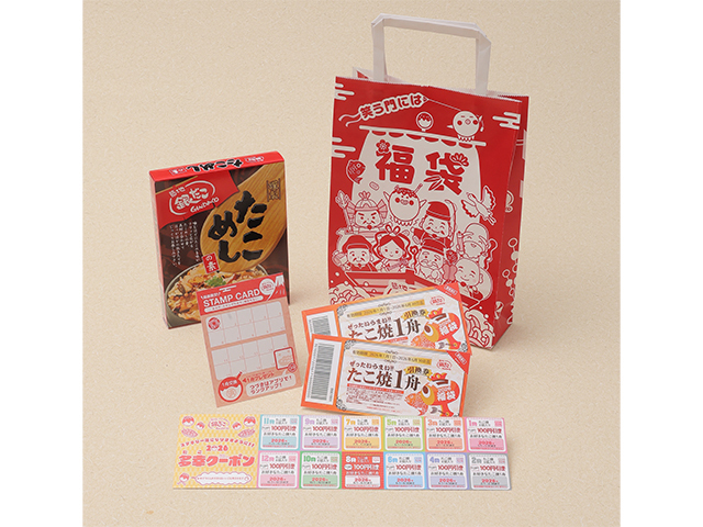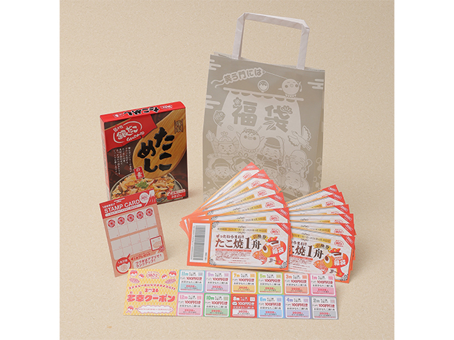 内容は、たこ焼引換券、たこめしの素、割引クーポン券、スタンプ券が入っています。