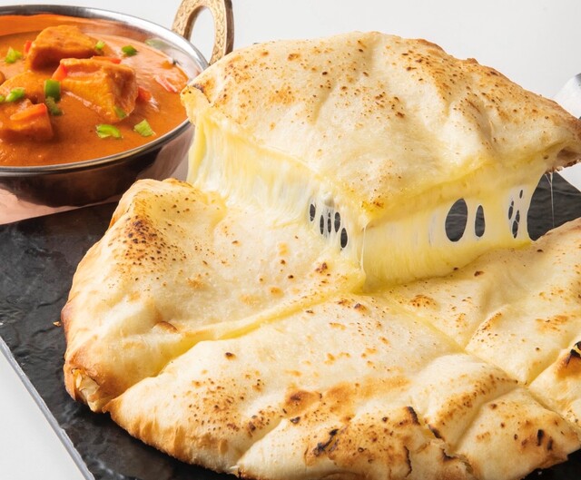 バターチキンカレー&チーズナンセット(¥1890税込)人気のバターチキンカレーと、とろ~りチーズナンの人気のセット |