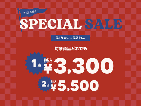 雑貨&ファッションSPECIAL SALE「1点 ¥3,300(税込)/2点 ¥5,500(税)開催!THE KISS