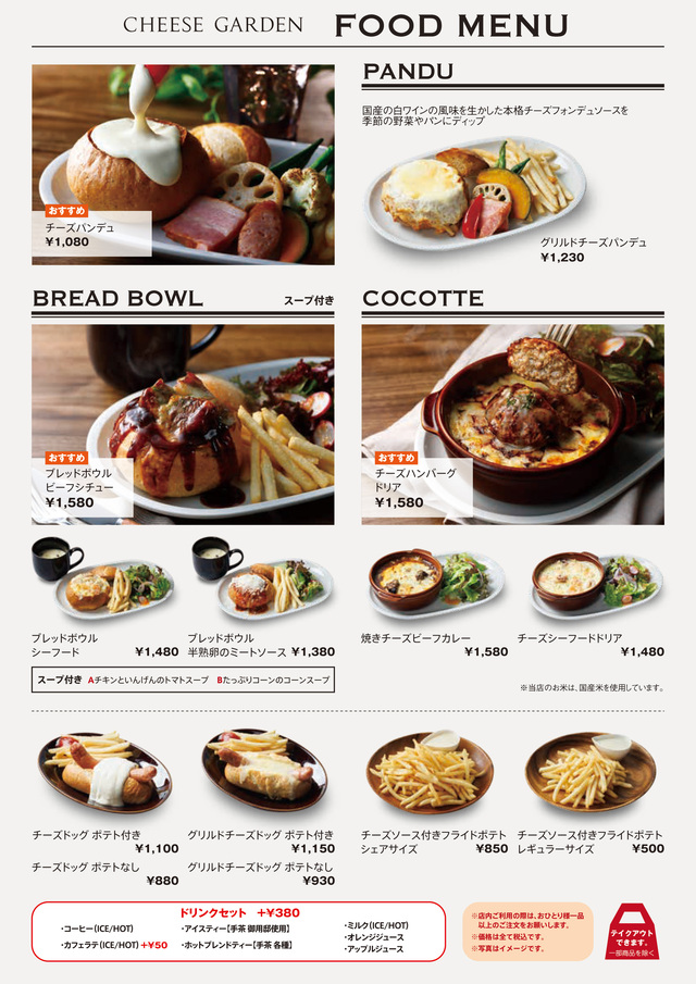 人気のチーズパンデュやチーズドッグはそのままに、これからの寒い季節にぴったりな温かいメニューであるハンバーグやブレッドボウルなど、今まで以上にお楽しみいただけるメニューをご用意いたしました!
