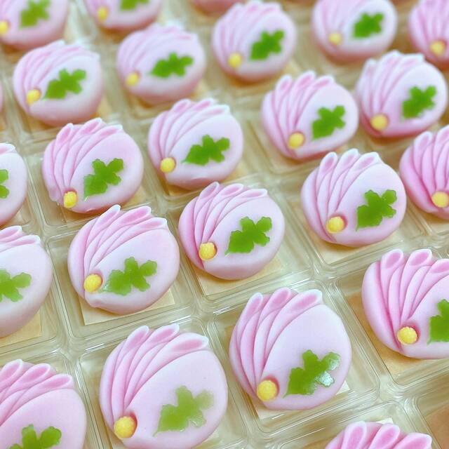菓銘「姫菊」: 紅色練切:中餡白餡
