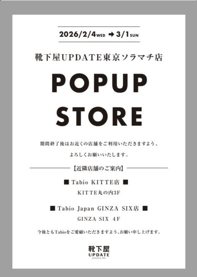 勝手ながら「靴下屋UPDATE東京ソラマチ店」は