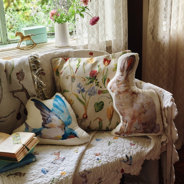 植物や動物たちをあしらったマルチファブリックやクッションをはじめ、うさぎや草花のモチーフが愛らしいティーウエア、缶入りのお菓子など春を迎える自然の美しさが描かれたアイテムが揃います。 是非、店頭でご覧ください。お待ちしております