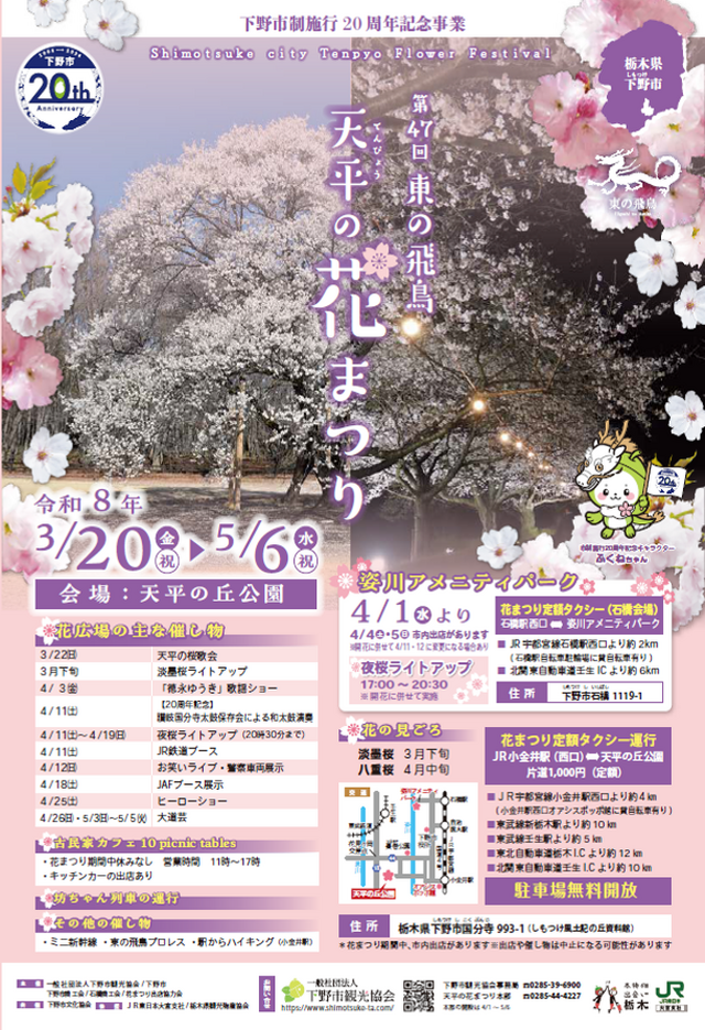 今回ご紹介する「下野市政20周年事業第47回東の飛鳥天平の花まつり」は、天平の丘公園を会場に開催。