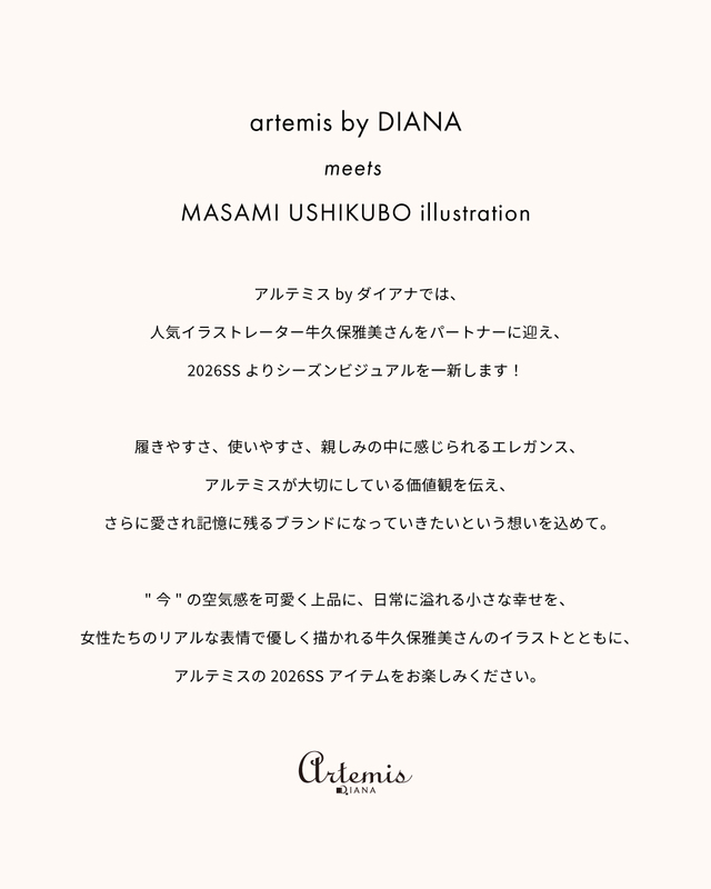 アルテミス by ダイアナでは、人気イラストレーター牛久保雅美さんをパートナーに迎え、2026SSよりシーズンビジュアルを一新します!