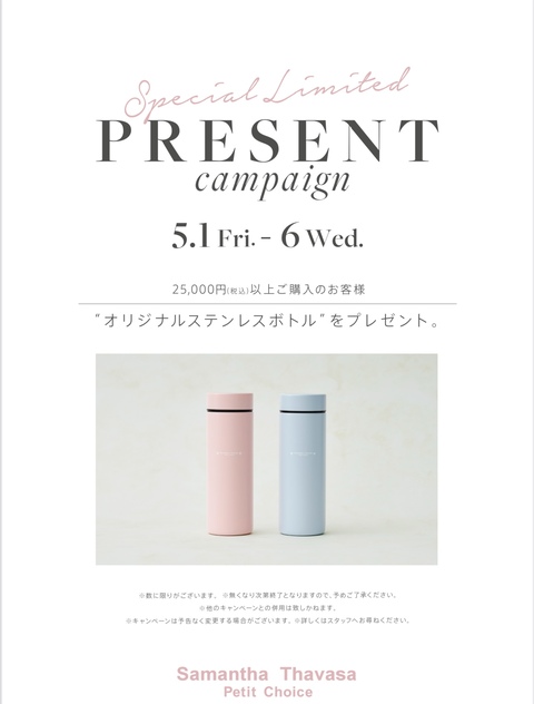 雑貨&ファッションオリジナルステンレスボトルプレゼントキャンペーン開催決定!!サマンサタバサプチチョイス
