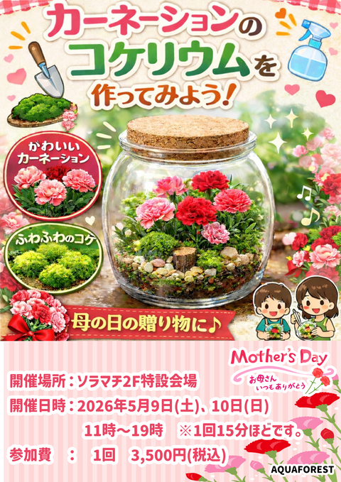 雑貨&ファッションワークショップ 「カーネーションのコケリウムを作ってみよう」AQUA FOREST