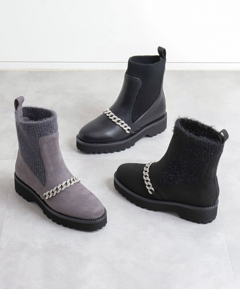 雑貨&ファッションビジューチェーン付き 厚底ニット切り替えブーツアルテミス by ダイアナ