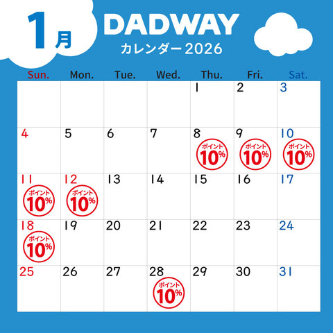 雑貨&ファッション1月ポイントカレンダーDADWAY/Ergobaby2026年1月8日 ~ 2026年1月28日 -
