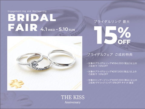 雑貨&ファッションブライダルフェアのお知らせ《4/1-5/10》THE KISS2026年4月1日 ~ 2026年5月10日 -