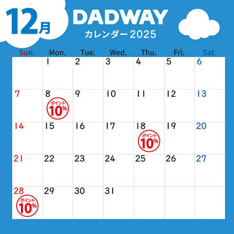 雑貨&ファッション12月ポイントカレンダーDADWAY/Ergobaby2025年12月1日 ~ 2025年12月28日 -