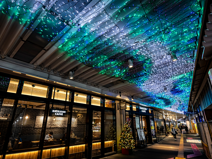 クリスマス時期限定の光の演出をどうぞお楽しみください。