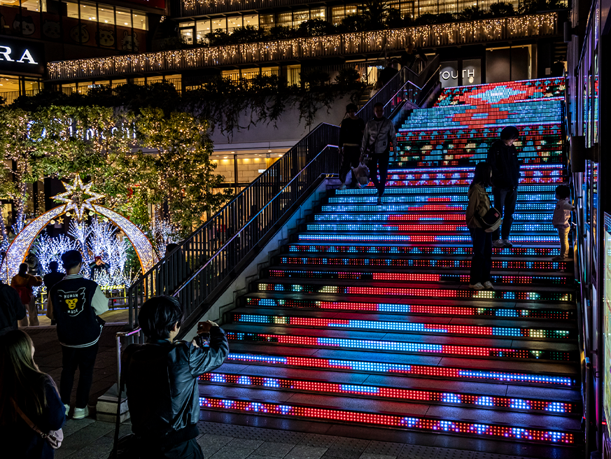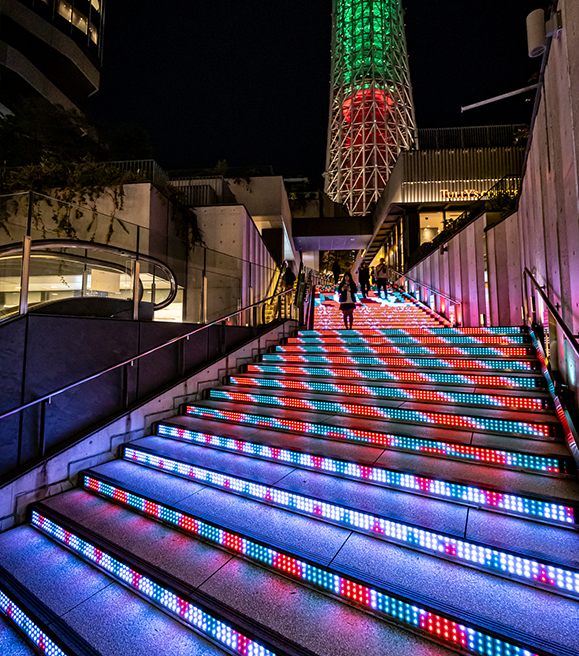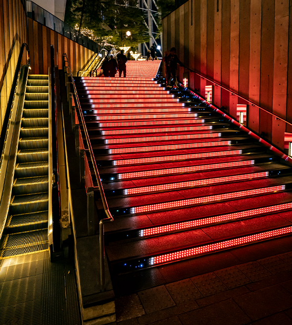 階段をLEDグラフィカル照明でライトアップする「階段グラフィカルライティング」が登場!