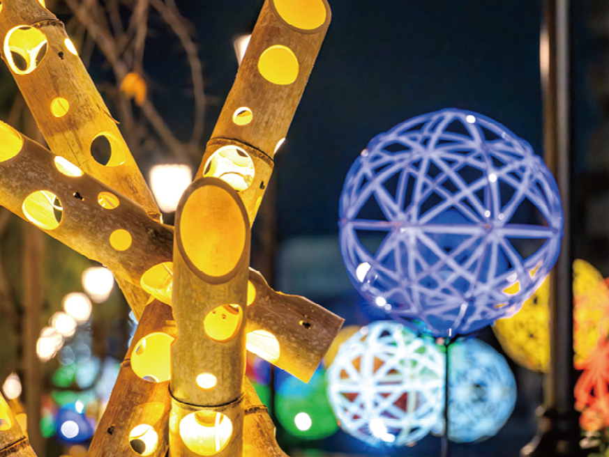 すみだリバーウォーク周辺では、竹あかりを使ったライトアップイベントを開催。